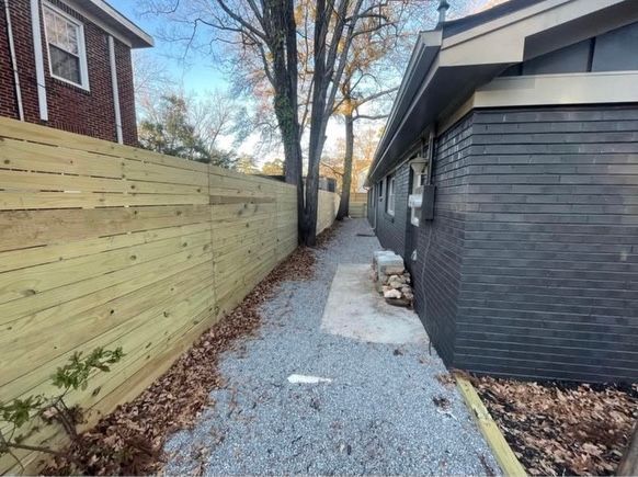 This project, completed in the Durham area, involved several key enhancements to the property. The work included framing a well-designed pathway, constructing a durable fence, and enclosing the back portion of the house to create a more private and functional space. Additionally, the floor was expanded with gravel to improve the overall aesthetics and usability of the area. The project was finalized with a clean, polished look, as a sleek black paint finish was applied, enhancing the overall visual appeal and durability of the outdoor space.